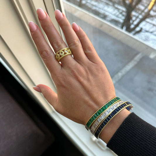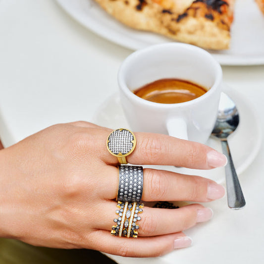 Rooted in the spirit of Brooklyn and inspired by the strength of women everywhere, the Freida Rothman Collection blends classic luxury with modern design. Each piece is thoughtfully crafted to tell a story—one of resilience, grace, and individuality. Known for her signature use of matte finishes, pavé stones, and mixed metals, Freida Rothman’s jewelry layers sophistication with a touch of bold.