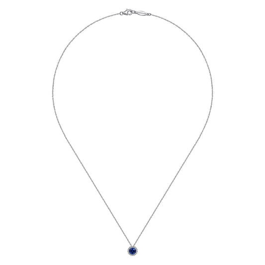 14K White Gold Sapphire and Diamond Halo Pendant Necklace