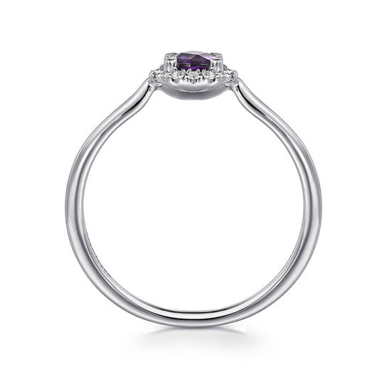 14K White Gold Amethyst and Diamond Halo Ring