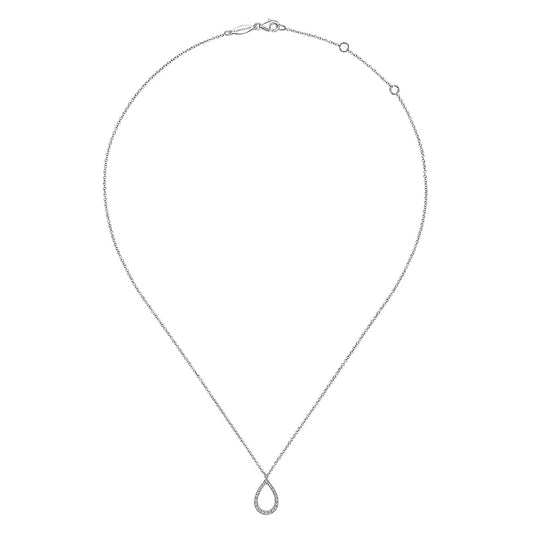 14K White Gold Teardrop Diamond Pendant Necklace