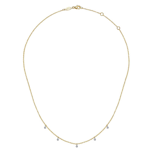 14K Yellow-White Gold Diamond Stations Droplet Necklace