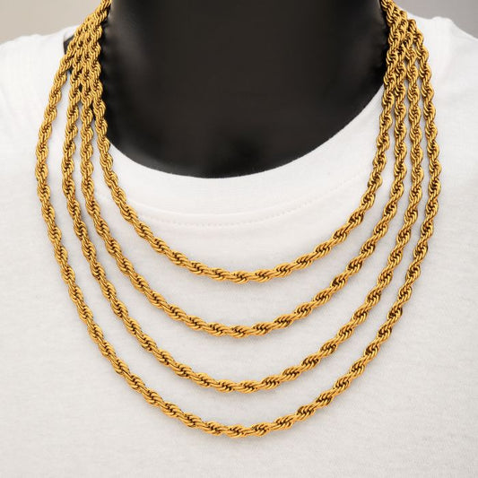 6mm 18K Gold Plated Rope Chain | 24" | INOX