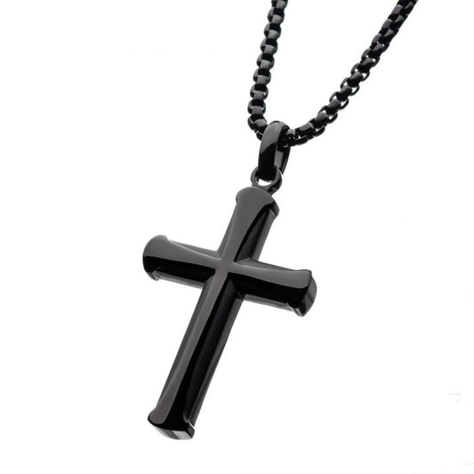 Stainless Steel Black Plated Apostle Cross Pendant with Chain | INOX