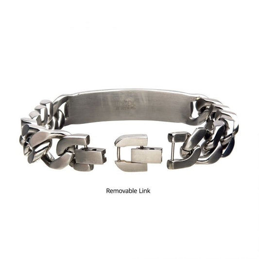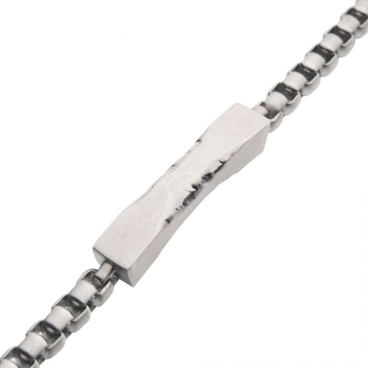Matte Steel Chiseled Engravable Drop with Bold Box Chain Bracelet | INOX