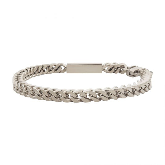 Stainless Steel Engravable ID Block with Franco Chain Bracelet | 8.5" INOX