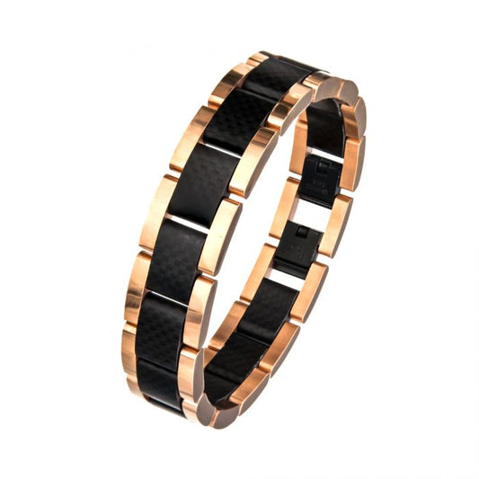 Black and Rose Gold Plated with Carbon Fiber Link Bracelet | INOX