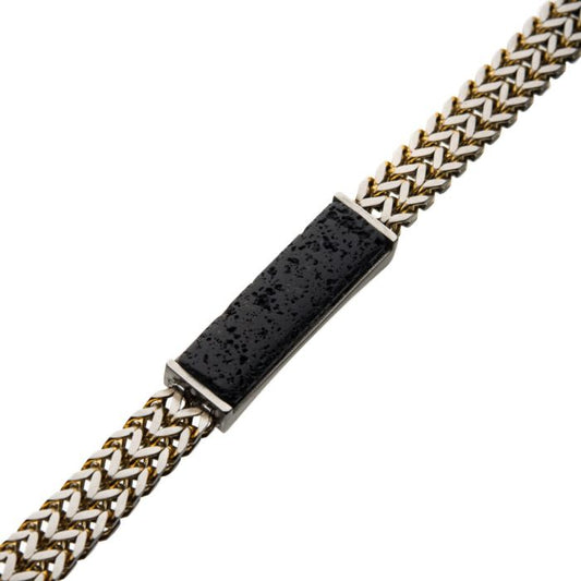 Stainless Steel Gold Plated Double Franco Chain with Lava Stone ID Link Bracelet | INOX