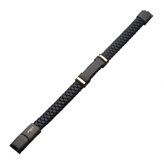 Men's Stainless Steel Black Leather with Rose Gold Plated ID Bracelet | 8.75" Adjustable