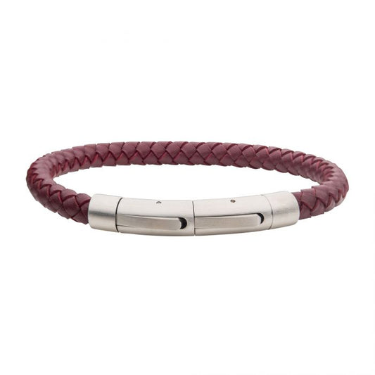 6mm Burgundy Genuine Leather Bracelet | INOX