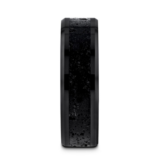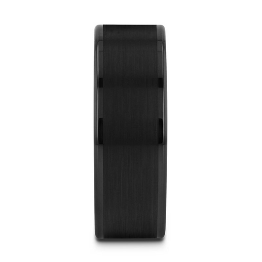 VULCAN Flat Black Tungsten Ring with Brushed Center & Polished Edges -