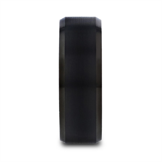 ELISE Black Tungsten Ring with Polished Beveled Edges and Brush Finish