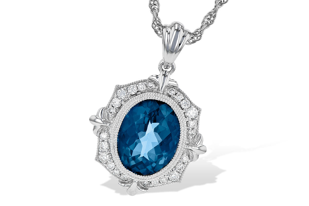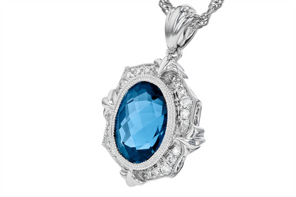 This London blue topaz and diamond necklace is ideal for anyone who appreciates the allure of bold color and refined design. Whether as a gift or a personal statement piece, this necklace will be a treasured addition to any fine jewelry collection, bringing elegance and brilliance to every occasion.