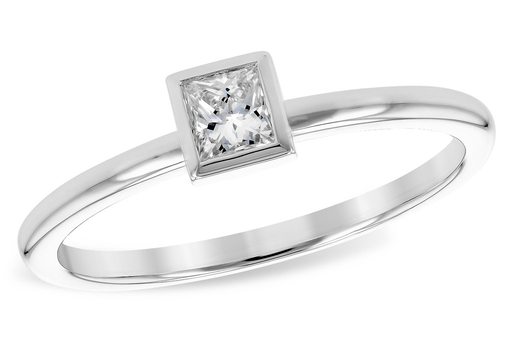 "Indulge in the luxurious beauty of this 14K white gold solitaire ring, featuring a dazzling 0.20 carat princess-cut diamond. Enhance your look with the timeless elegance of this stunning piece. It's a must-have for any jewelry collection!"