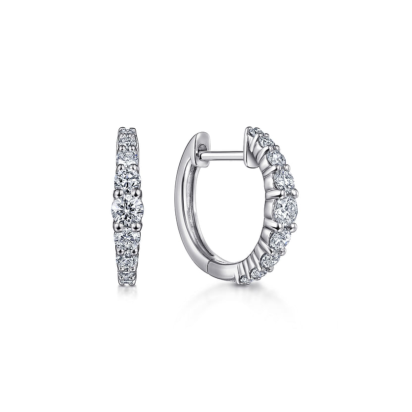 14K White Gold 13mm Classic Diamond Huggie Earrings
