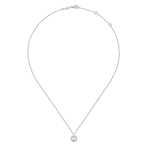 14K White Gold Cultured Pearl and Diamond Halo Pendant Necklace