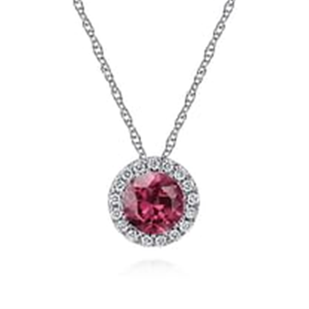 14K White Gold Diamond Halo Pink Tourmaline Pendant Necklace