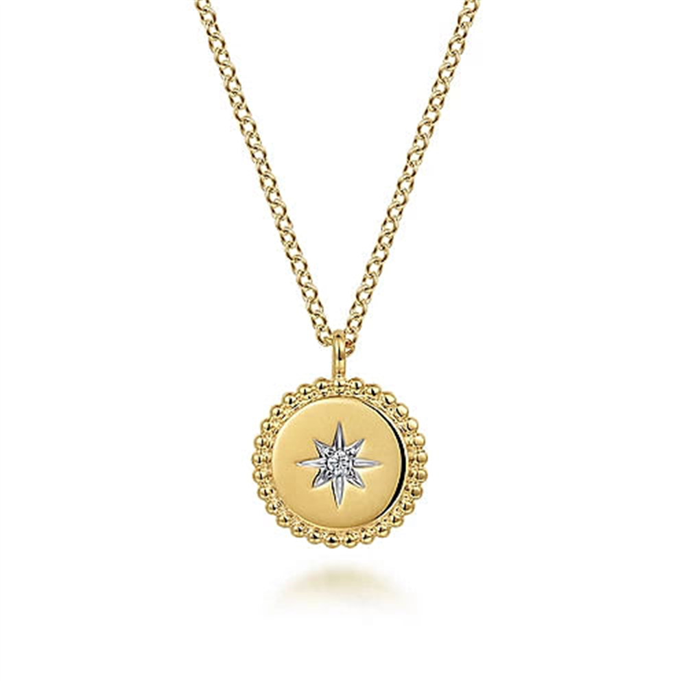 Elevate your look with the captivating 14K Yellow Gold Bujukan Medallion Necklace, featuring a stunning Starburst Diamond Center. Part of the exquisite Bujukan Collection, this piece will add a touch of glamor to your every outfit. Available in a perfect size of 17.5 inches.