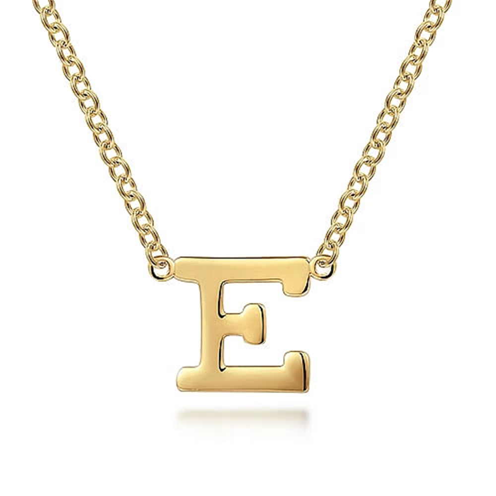 The 14K Yellow Gold E Initial Necklace blends timeless sentiment with modern simplicity. Crafted in polished 14K yellow gold, the clean-cut initial pendant offers a refined way to express your identity, honor a loved one, or mark a meaningful moment. Its minimalist design ensures it shines solo or layers effortlessly with other favorites.