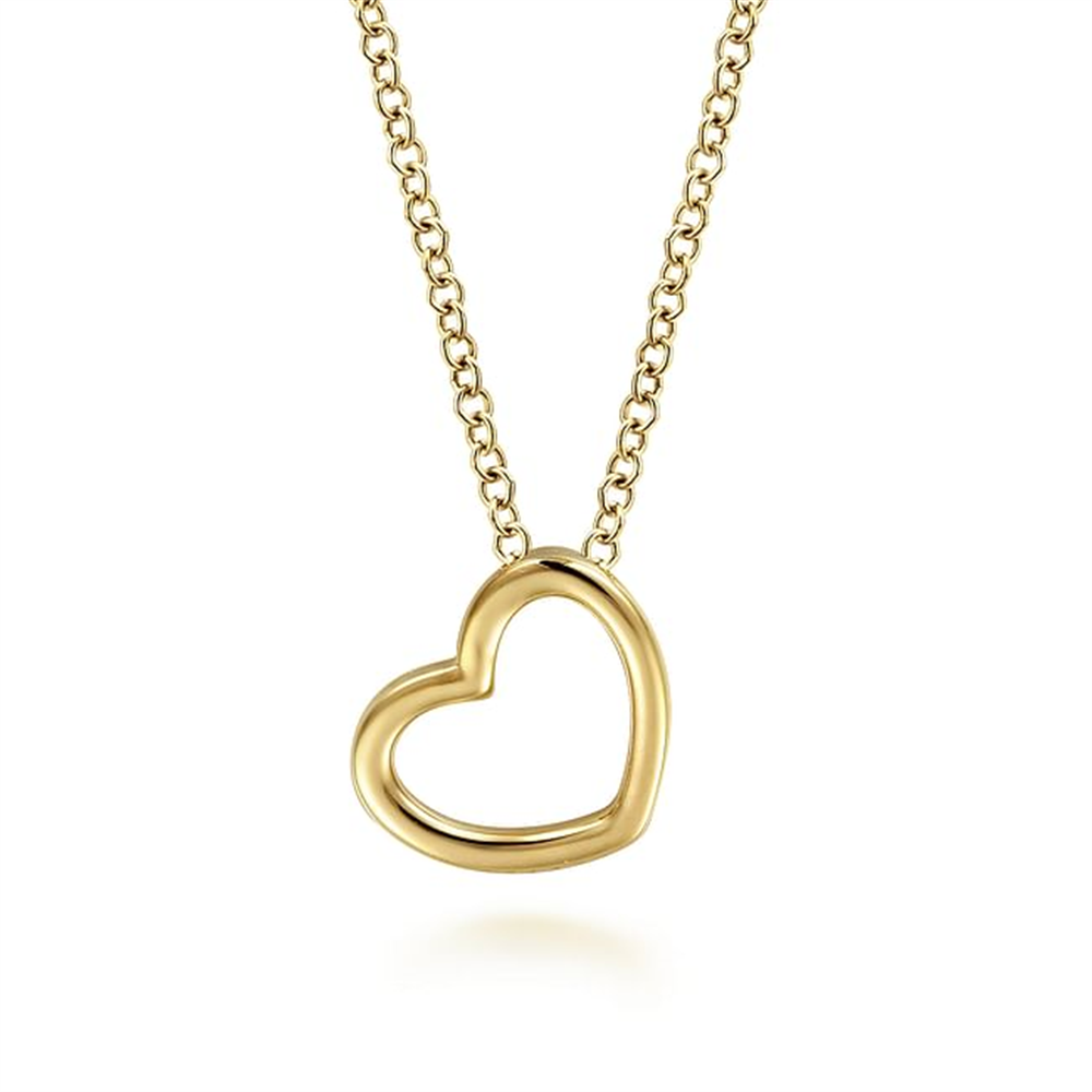14K Yellow Gold Tilted Heart Pendant Necklace