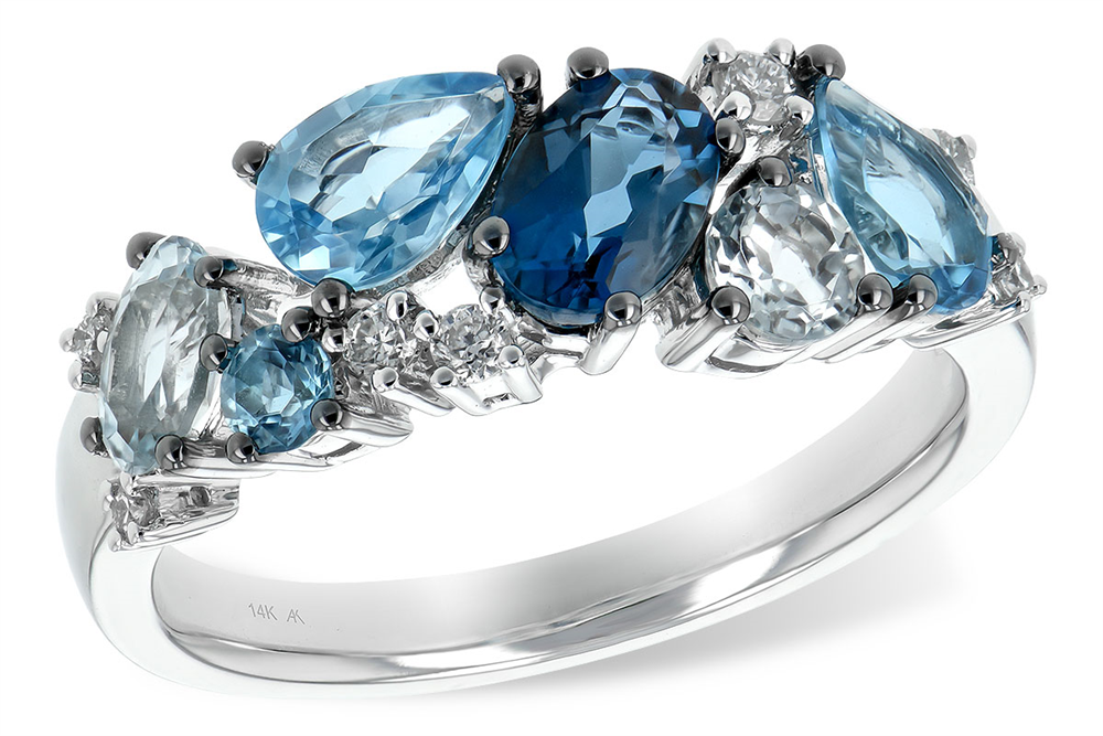 Available exclusively at Avonlea Jewelers—embrace the calm elegance of blue topaz accented with sparkling diamonds.