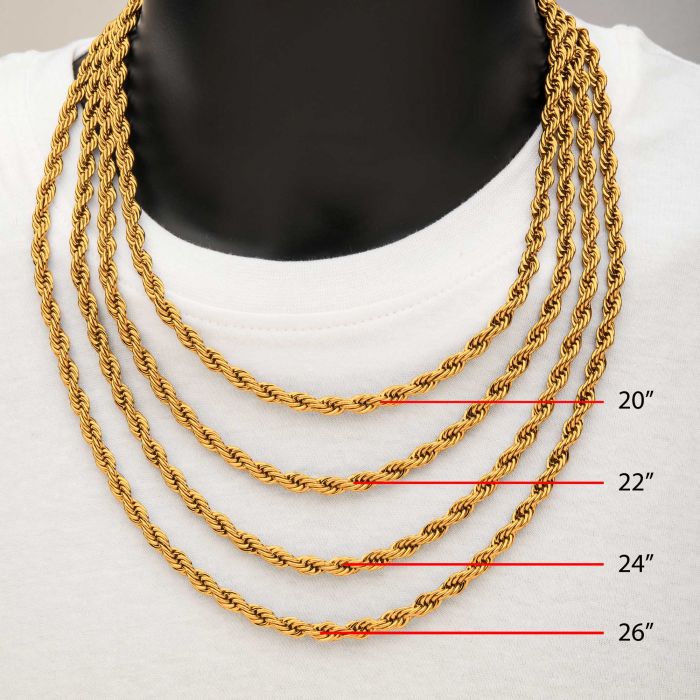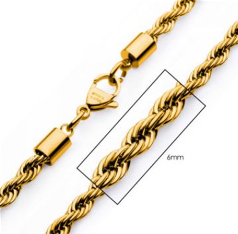 6mm 18K Gold Plated Rope Chain | 20" | INOX