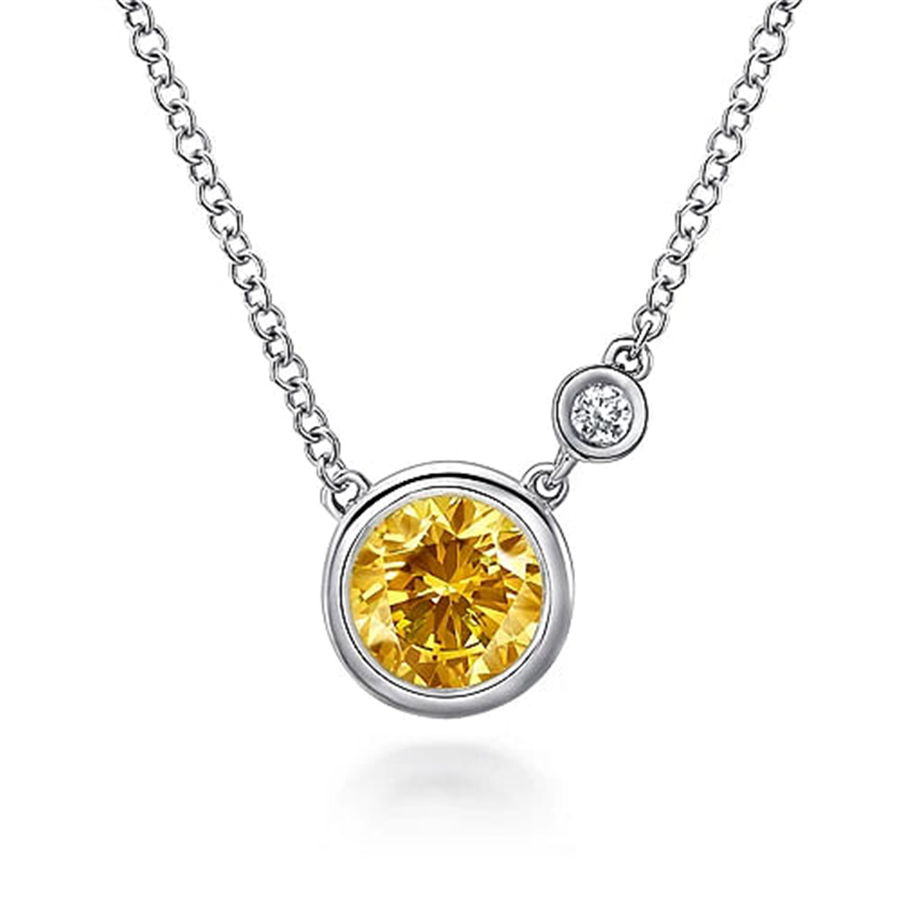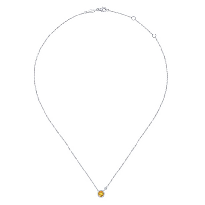 925 Sterling Silver Citrine and Diamond Pendant Necklace Serial No