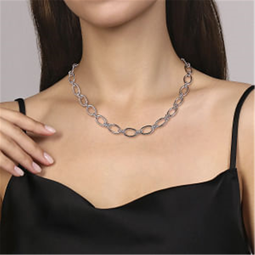925 Sterling Silver Oval Link Chain Necklace with Bujukan Connectors