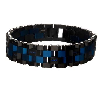 Men's Blue & Black with Blue Diamonds Link Bracelet from INOX