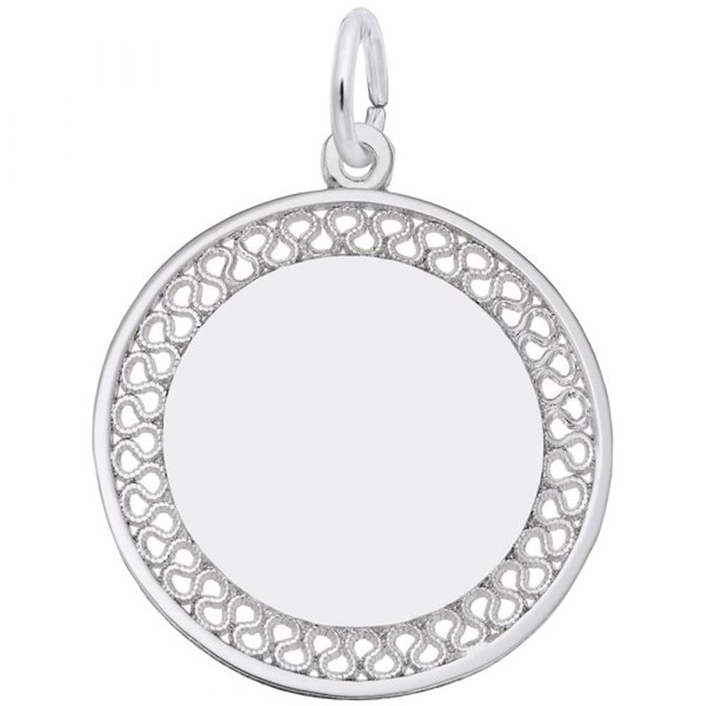 Engravable Large Filigree Disc Charm / Sterling Silver