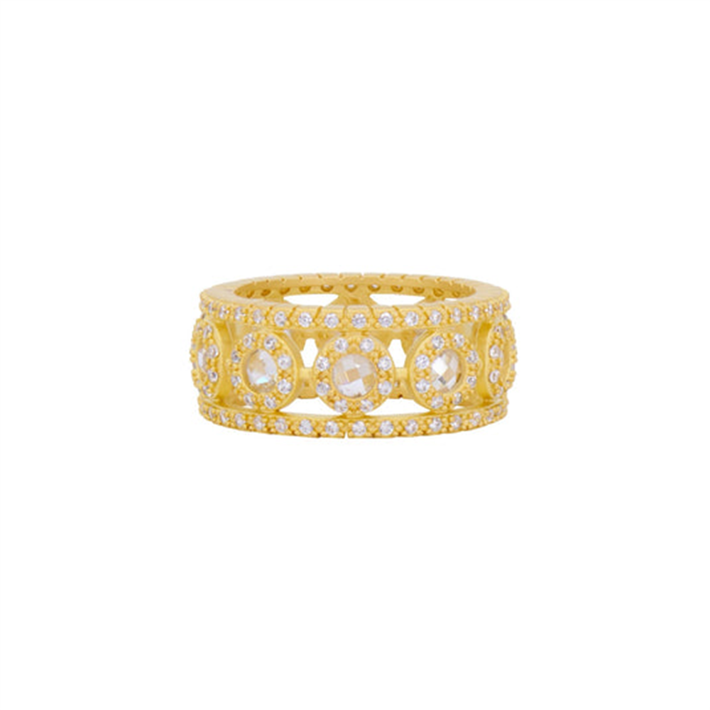 Hand-set lab-created diamond simulants create a radiant pavé surface, delivering just the right amount of sparkle without overpowering—perfect for both daily wear and special occasions. With its structured, high-profile silhouette, this ring exudes confidence and elegance in equal measure.