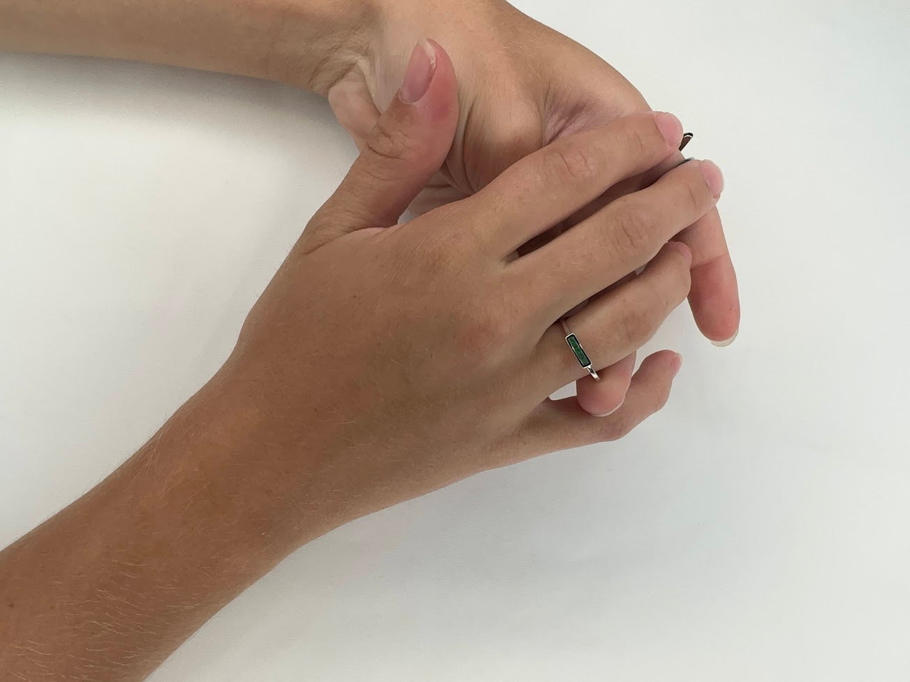 Ideal for stacking or as a refined statement on its own, this emerald ring is designed to bring a pop of color and sophistication to any outfit. Its elegant simplicity makes it versatile enough for both everyday wear and special occasions.