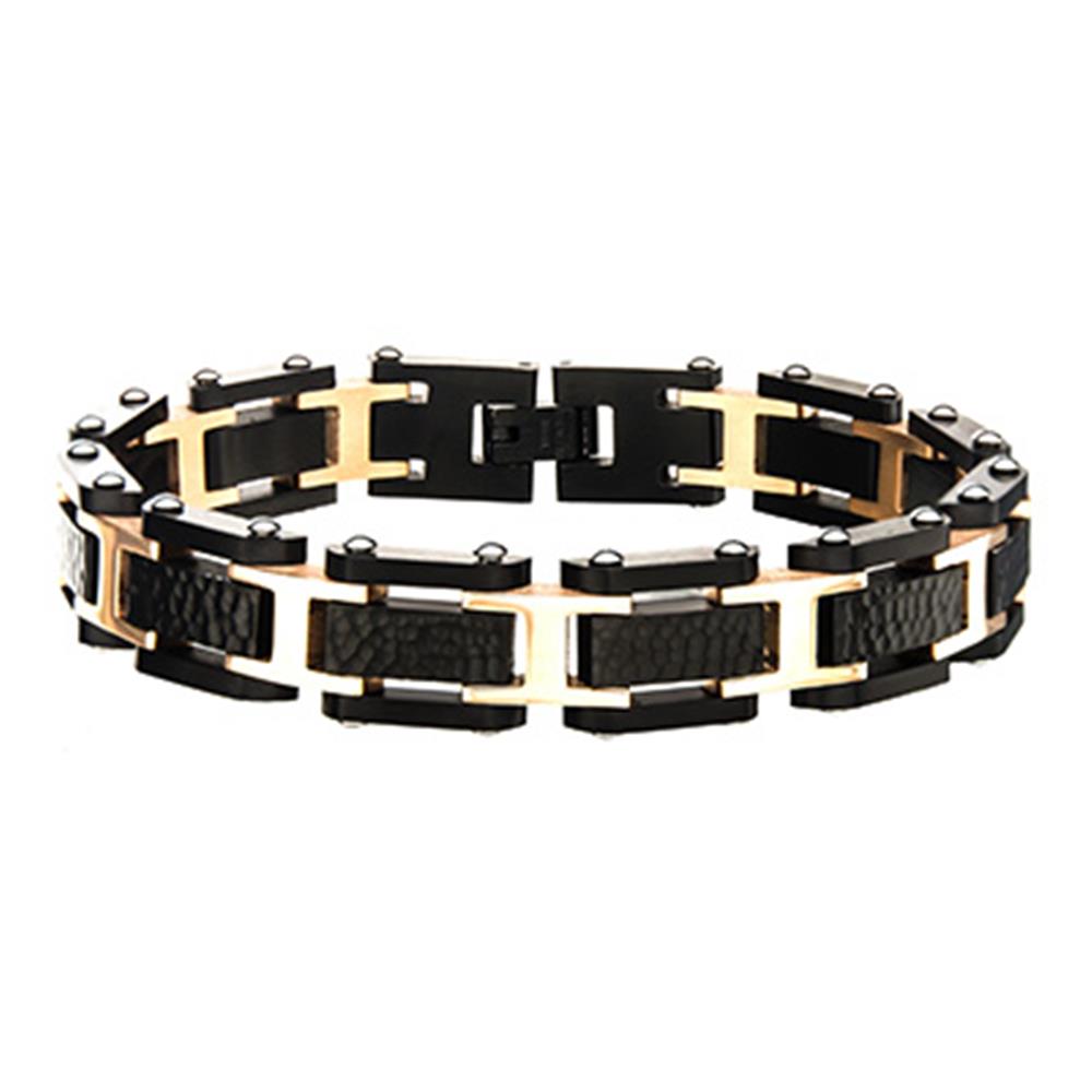 Men's Black Pebble Design with Rose Gold Plated Link Bracelet . . Dimension: 8 1/2 inch (L)