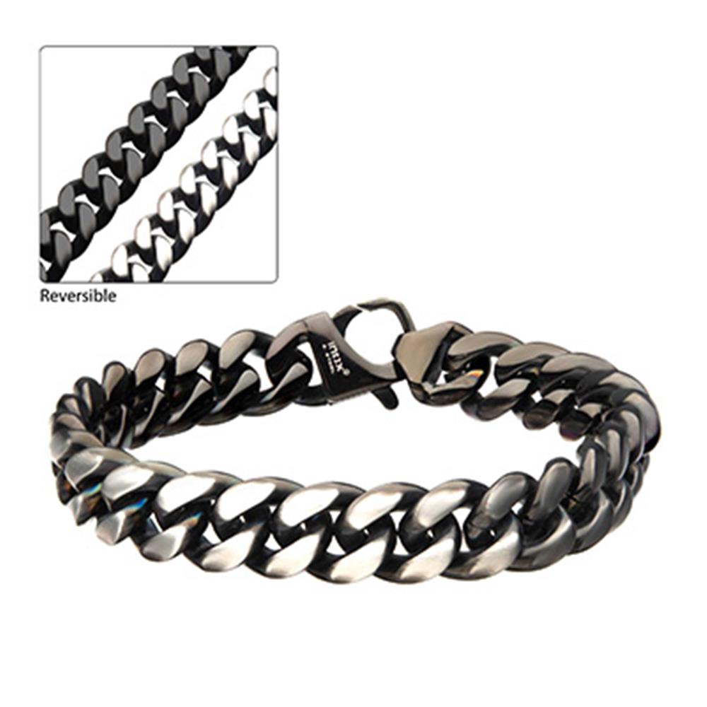 Stainless Steel Matte/ Antiqued & Black Plated Reversible Big Curb Chain Colossi Bracelet | INOX