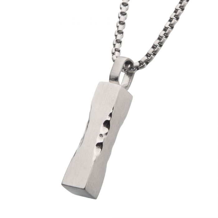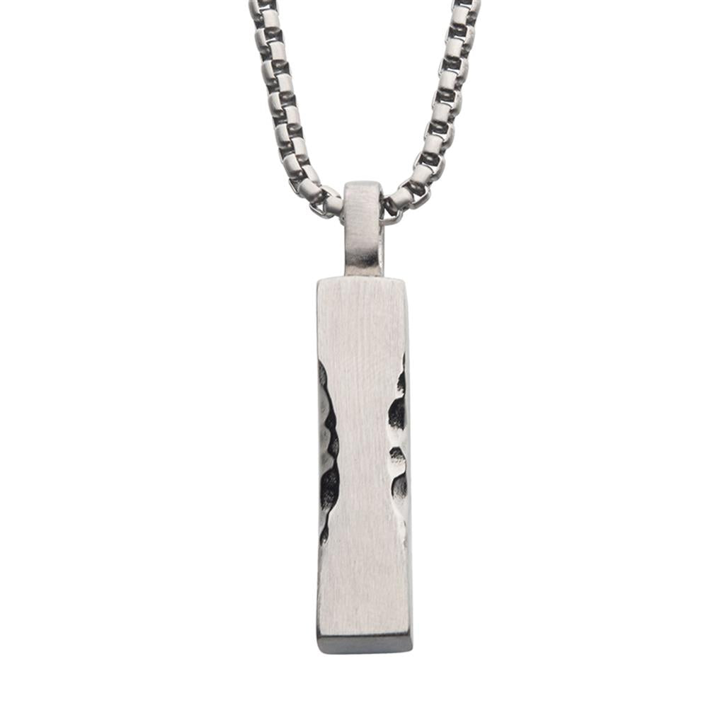 Matte Steel Chiseled Engravable Drop Pendant with Box Chain | INOX
