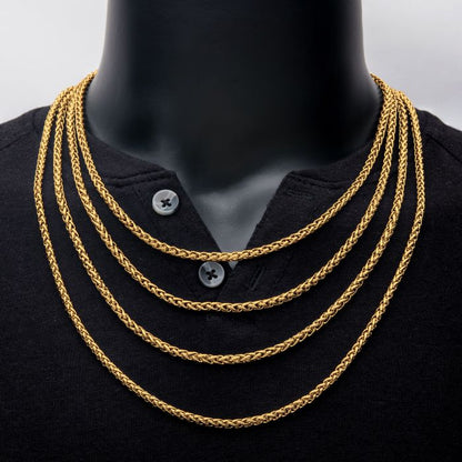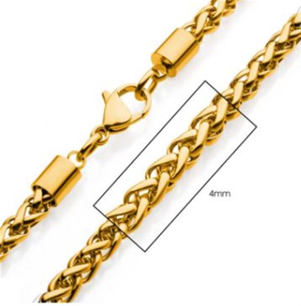 4mm 18K Gold Plated Wheat Chain Necklace | 20" | INOX