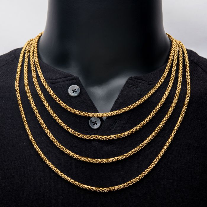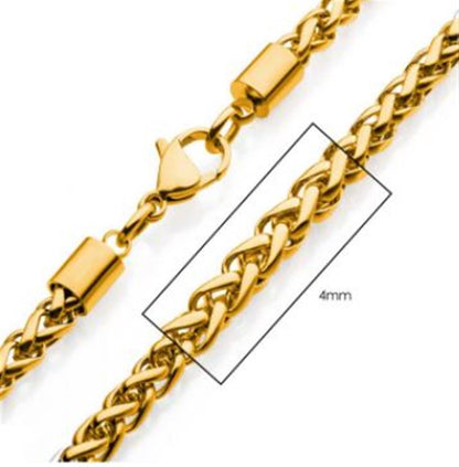 Men's Stainless Steel 4mm 18K Gold Plated Wheat Chain Necklace