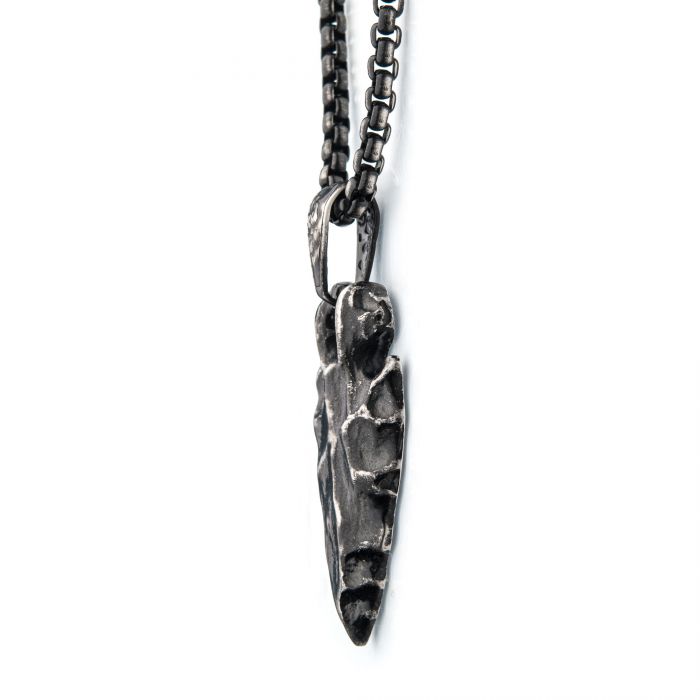 Stainless Steel Gun Metal Plated Chiseled Arrowhead Pendant | 24" | INOX