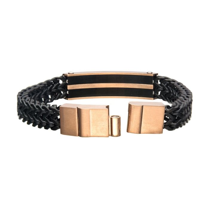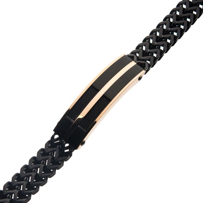 Stainless Steel, Black IP & Rose Gold IP Franco Chain Bracelet | INOX