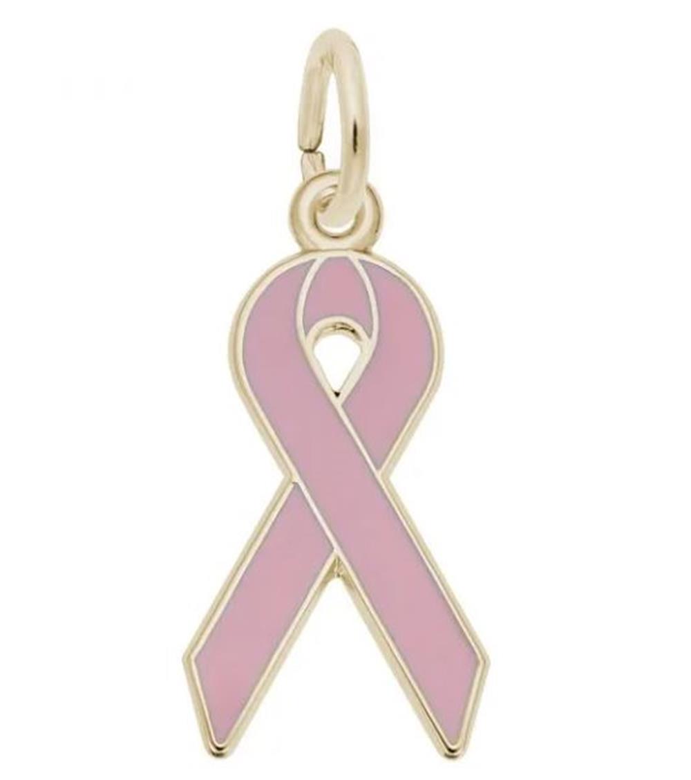 Pink Cancer Ribbon Charm / 10K Yellow Gold